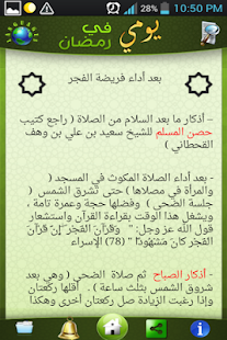 هو عبارة عن برمجة عربية يطرح مجانا على الجوجل بلاي ، يتضمن جدول كامل بالاعمال التي يجب على الصائم القيام بها خلال شهر رمضان المبارك بعد اداء صلاة الفجر وإلى صلاة العشاء بالاضافة إلى برنامج حول كيف تقضي يومك في رمضان . تحميل تطبيق يومك في رمضان من جوجل بلاي من هنا .