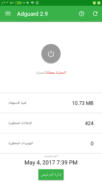 ملاحظة : قَد لايعمل التطبيق على منع بعض قليل من الإعلانات .